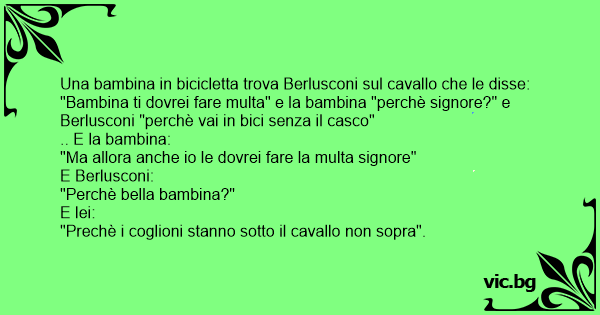 "Bambina ti dovrei fare multa" e la bambina "perchè signore?" e Berlusconi "perchè vai in bici senza il casco"