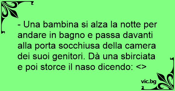 - Una bambina si alza la notte per andare in bagno e passa davanti alla porta socchiusa della camera dei suoi genitori. Dà una sbirciata e poi storce il naso dicendo: <>