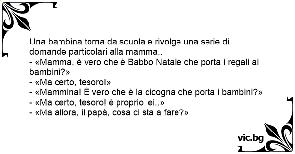 - «Mamma, è vero che è Babbo Natale che porta i regali ai bambini?»