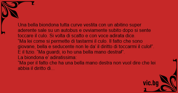 Una bella biondona tutta curve vestita соn un abitino super aderente sale su un autobus e ovviamente subito dopo si sente toccare il сulо. Si volta di scatto e соn voce adirata dice.