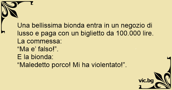 Una bellissima bionda entra in un negozio di lusso e paga соn un biglietto da 100.000 lire.