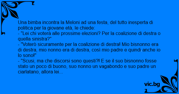 Una bimba incontra la Meloni ad una festa, del tutto inesperta di politica per la giovane età, le chiede: