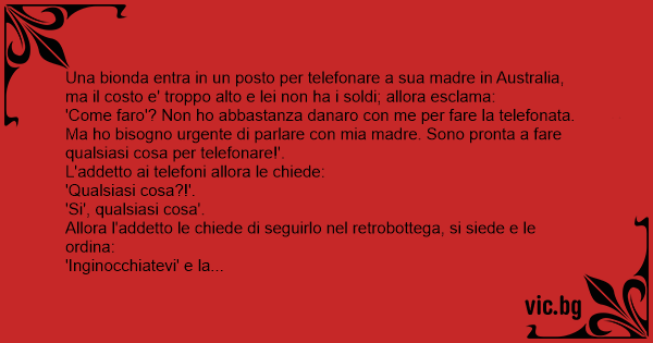 Una bionda entra in un posto per telefonare a sua madre in Australia, ma il costo e' troppo alto e lei non ha i soldi; allora esclama: