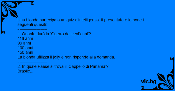 Una bionda partecipa a un quiz d’intelligenza. Il presentatore le pone i seguenti quesiti: