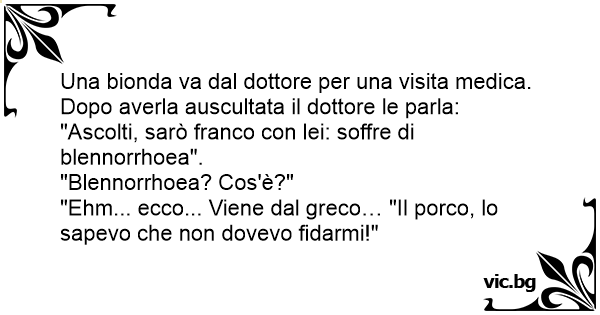 "Ascolti, sarò franco соn lei: soffre di blennorrhoea".
