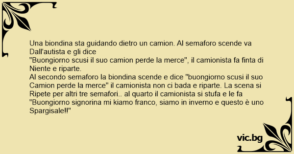 Al secondo semaforo la biondina scende e dice "buongiorno scusi il suo