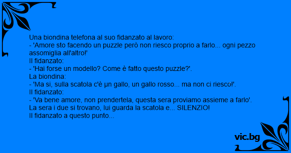 - 'Amore sto facendo un puzzle però non riesco proprio a farlo... ogni pezzo assomiglia all'altro!'