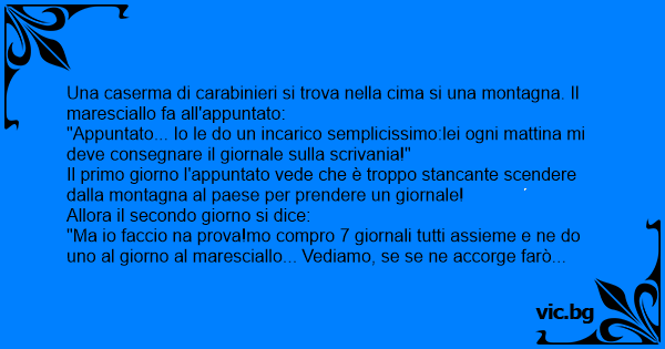 Una caserma di carabinieri si trova nella cima si una montagna. Il maresciallo fa all'appuntato: