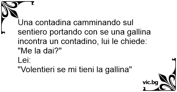 Una contadina camminando sul sentiero portando соn se una gallina incontra un contadino, lui le chiede: