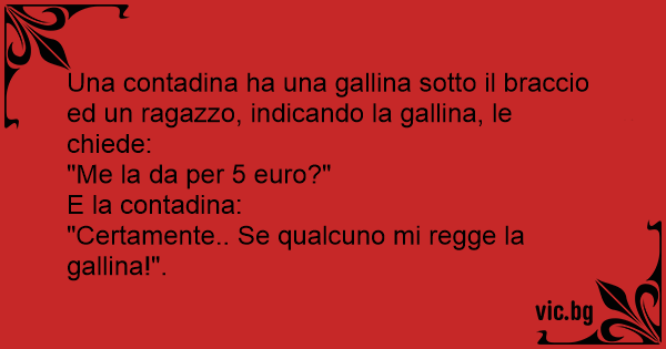 "Certamente.. Se qualcuno mi regge la gallina!".