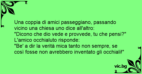 Una coppia di amici passeggiano, passando vicino una chiesa uno dice all'altro: