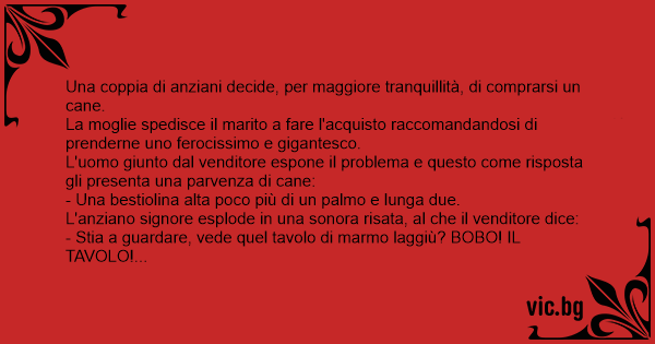 La moglie spedisce il marito a fare l'acquisto raccomandandosi di prenderne uno ferocissimo e gigantesco.