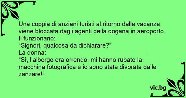 Una coppia di anziani turisti al ritorno dalle vacanze viene bloccata dagli agenti della dogana in aeroporto.