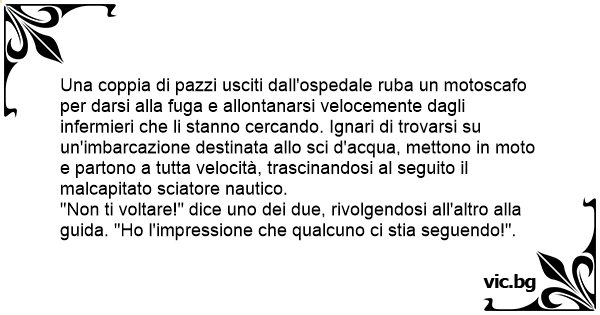 Una coppia di pazzi usciti dall'ospedale ruba un motoscafo per darsi alla fuga e allontanarsi velocemente dagli infermieri che li stanno cercando. Ignari di trovarsi su un'imbarcazione destinata allo sci d'acqua, mettono in moto e partono a tutta velocità, trascinandosi al seguito il malcapitato sciatore nautico.