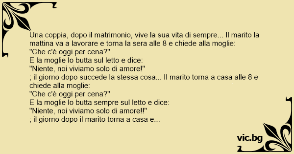 ; il giorno dopo succede la stessa cosa... Il marito torna a casa alle 8 e chiede alla moglie: