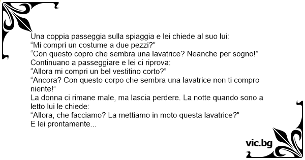 La donna ci rimane male, ma lascia perdere. La notte quando sono a letto lui le chiede: