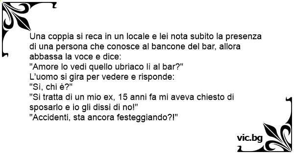 Una coppia si reca in un locale e lei nota subito la presenza di una persona che conosce al bancone del bar, allora abbassa la voce e dice: