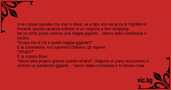 Una coppia sposata che vive in italia, va a fare una vacanza in Inghilterra....