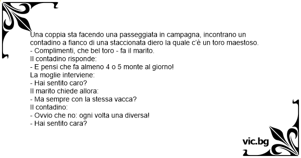 - Complimenti, che bel toro - fa il marito.