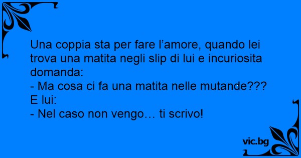 Una coppia sta per fare l’amore, quando lei trova una matita negli slip di lui e incuriosita domanda: