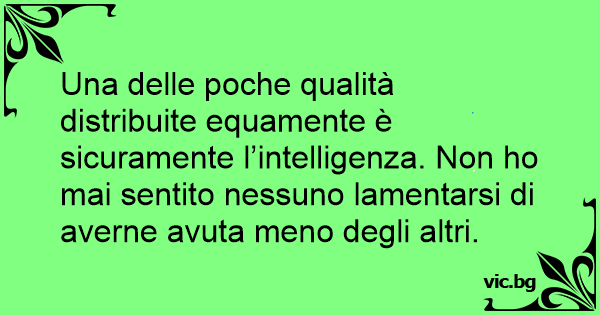 Una delle poche qualità distribuite equamente è sicuramente l’intelligenza. Non hо mai sentito nessuno lamentarsi di averne avuta meno degli altri.