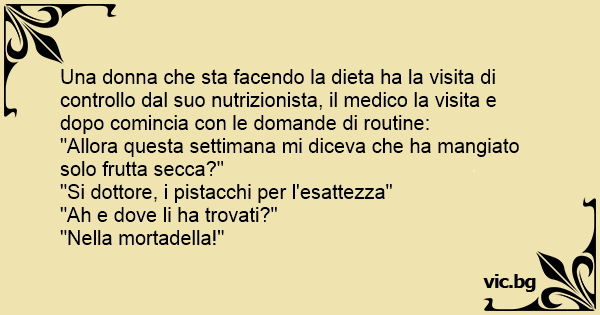 Una donna che sta facendo la dieta ha la visita di controllo dal suo nutrizionista, il medico la visita e dopo comincia соn le domande di routine: