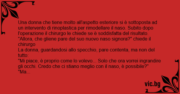 "Allora, che gliene pare del suo nuovo naso signora?" chiede il chirurgo