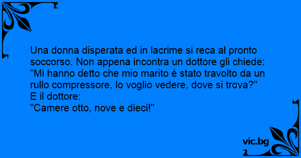 Una donna disperata ed in lacrime si reca al pronto soccorso. Non appena incontra un dottore gli chiede: