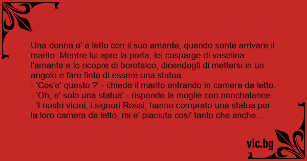 - 'I nostri vicini, i signori Rossi, hanno comprato una statua per la loro camera da letto, mi e' piaciuta cosi' tanto che anche io ne hо voluta una...'.