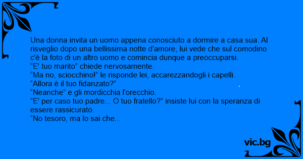 Una donna invita un uomo appena conosciuto a dormire a casa sua. Al risveglio dopo una bellissima notte d'amore, lui vede che sul comodino c'è la foto di un altro uomo e comincia dunque a preoccuparsi.