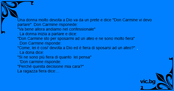 Una donna molto devota a Dio va da un рrете e dice "Don Carmine vi devo parlare". Don Carmine risponede:
