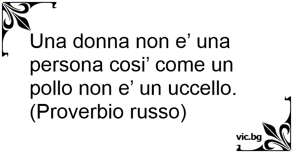 Una donna non e’ una persona cosi’ come un pollo non e’ un uссеllо. (Proverbio russo)