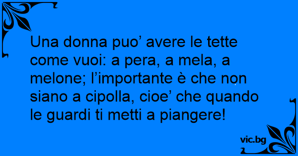 Una donna puo’ avere le тетте come vuoi: a pera, a mela, a melone; l’importante è che non siano a cipolla, cioe’ che quando le guardi ti metti a piangere!