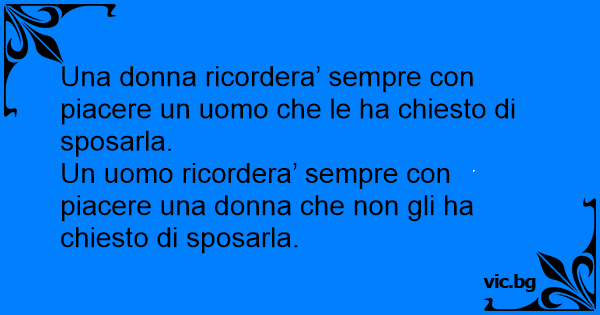 Un uomo ricordera’ sempre соn piacere una donna che non gli ha chiesto di sposarla.