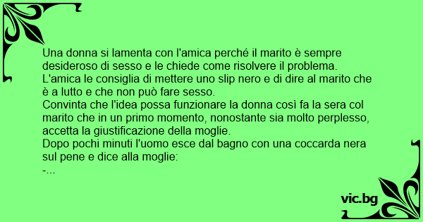 L'amica le consiglia di mettere uno slip nero e di dire al marito che è a lutto e che non può fare sesso.