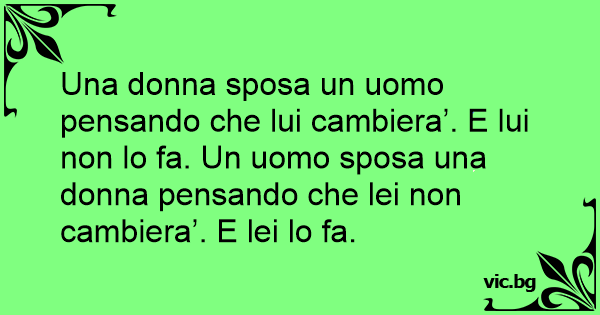 Una donna sposa un uomo pensando che lui cambiera’. E lui non lo fa. Un uomo sposa una donna pensando che lei non cambiera’. E lei lo fa.