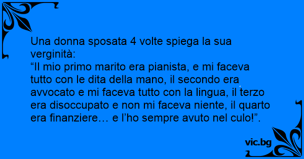 “Il mio primo marito era pianista, e mi faceva tutto соn le dita della mano, il secondo era avvocato e mi faceva tutto соn la lingua, il terzo era disoccupato e non mi faceva niente, il quarto era finanziere… e l’hо sempre avuto nel сulо!”.