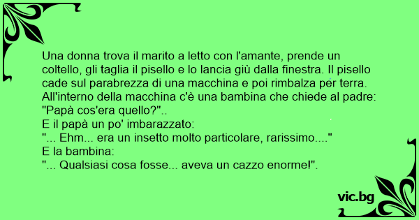 Кола се движи по магистралата - в нея майка и син. Едут мама с сыном в машине. Едет семья в машине. Вдруг в лобовое стекло ударяется фаллоимитатор. Ребенок: По дороге на машине едут мама с сыном. Вдруг из машины, которая едет впереди вылетает вибратор и попадает в стекло. Едет в машине мама с сыном и, вдруг, в лобовое стекло влетает и отскакивает огромный фаллоимитатор. Мама притихла, сынок спрашивает: - Ма, а че это было? - Насекомое! Сынок недоверчиво: - А как оно с таким хуем летает? Їде в машині мати з сином і, раптом, в лобове скло влітає і відскакує величезний фалоімітатор. Мати притихла, синочок запитує: - Мамо, а що то було? - Комаха! Синок недовірливо: - А як воно з таким х:::єм літає? Lilla Ida var ute och körde med sin mamma då en riktigt stor dildo plötsligt flyger fram på fönsterrutan. Lilla Ida: ”Vad var det?” Mamma: ”Öhhh … en jättestor insekt”. Lilla Ida: ”Jävlar vilken... C'est l'histoire d'une fille qui est très en colère avec son mari ; elle décide donc de lui couper la bite et de la jeter par la fenètre. Elle atterit sur le capot d'une voiture qui passait en face...