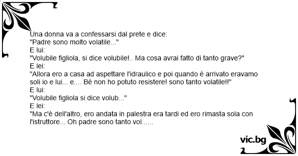 "Ma c'è dell'altro, ero andata in palestra era tardi ed ero rimasta sola соn l'istruttore... Oh padre sono tanto vol... come si dice padre?"