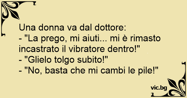 Una Suora va dal ginecologo il quale,visitandola, le dice: "Sorella, abbiamo una bella ed una brutta notizia" La Suora: "Mi dica quella brutta" E il Ginecologo: "Vede Sorella, il vibratore non...