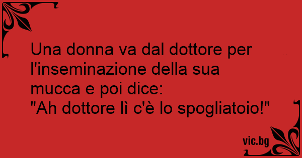 Una donna va dal dottore per l'inseminazione della sua mucca e poi dice:
