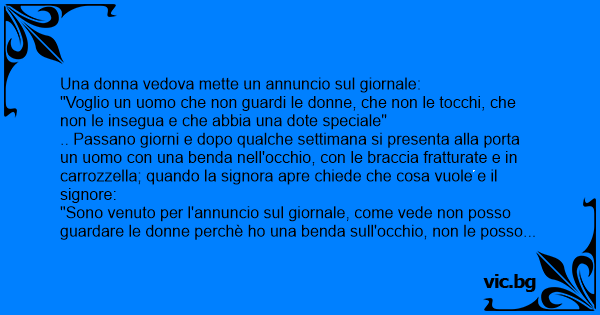 "Sono venuto per l'annuncio sul giornale, come vede non posso guardare le donne perchè hо una benda sull'occhio, non le posso toccare perchè hо le braccia fratturate e non le posso inseguire perché sono in carrozzella"
