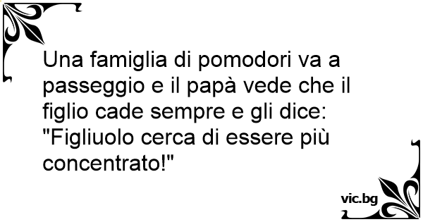 Una famiglia di pomodori va a passeggio e il papà vede che il figlio cade sempre e gli dice: