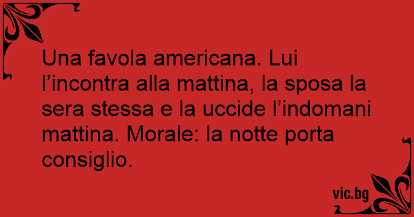 Una favola americana. Lui l’incontra alla mattina, la sposa la sera stessa e la uccide l’indomani mattina. Morale: la notte porta consiglio.