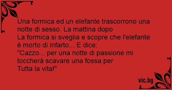 La formica si sveglia e scopre che l'elefante è morto di infarto... E dice: