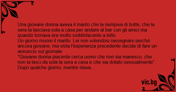 "Giovane donna piacente cerca uomo che non sia manesco, che non la lasci da sola la sera a casa e che sia dotato sessualmente".