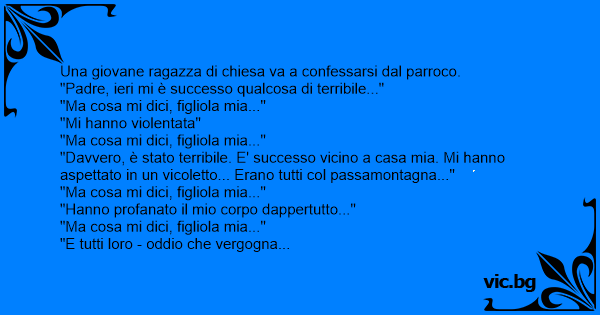 "Ma cosa mi dici, figliola mia? Va' a recitare 10 Padrenostro e 3 Ave Maria e pentiti per le bugie che hai appena pronunciato!"