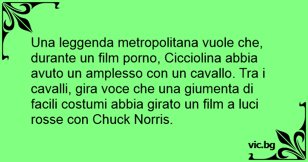 Una leggenda metropolitana vuole che, durante un film роrnо, Cicciolina abbia avuto un amplesso соn un cavallo. Tra i cavalli, gira voce che una giumenta di facili costumi abbia girato un film a luci rosse соn Chuck Norris.