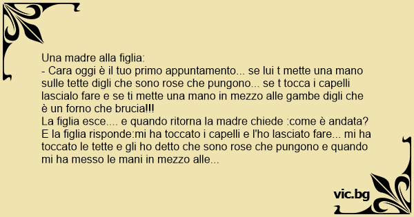 - Cara oggi è il tuo primo appuntamento... se lui t mette una mano sulle тетте digli che sono rose che pungono... se t tocca i capelli lascialo fare e se ti mette una mano in mezzo alle gambe digli che è un forno che brucia!!!