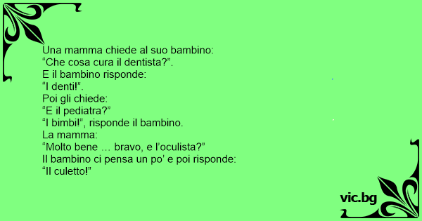 “Molto bene … bravo, e l’oculista?”